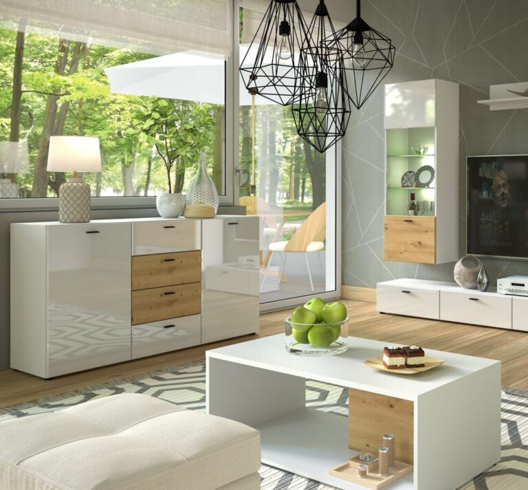 Meble do salonu to nie tylko opcja urządzenia całego domu w jednym stylu, ale to także praktyczne rozwiązanie dla mniejszych pomieszczeń. Pozwala to na pozbycie się problemu zbyt dużej liczby niepotrzebnych przedmiotów! Nie musisz kupować kompletnego zestawu mebli do salonu. Jeśli Twój salon nie ma miejsca na dwie witryny, regał, szafkę RTV oraz stolik, może rozważ wybór jednej kompaktowej witryny i na przykład uchylnej szafy? Oszczędzisz sporo przestrzeni w sypialni, zachowasz spójność stylu dzięki meblom z tej samej serii i zyskasz dodatkowe miejsce do przechowywania ubrań, a wszystko to za rozsądną cenę!